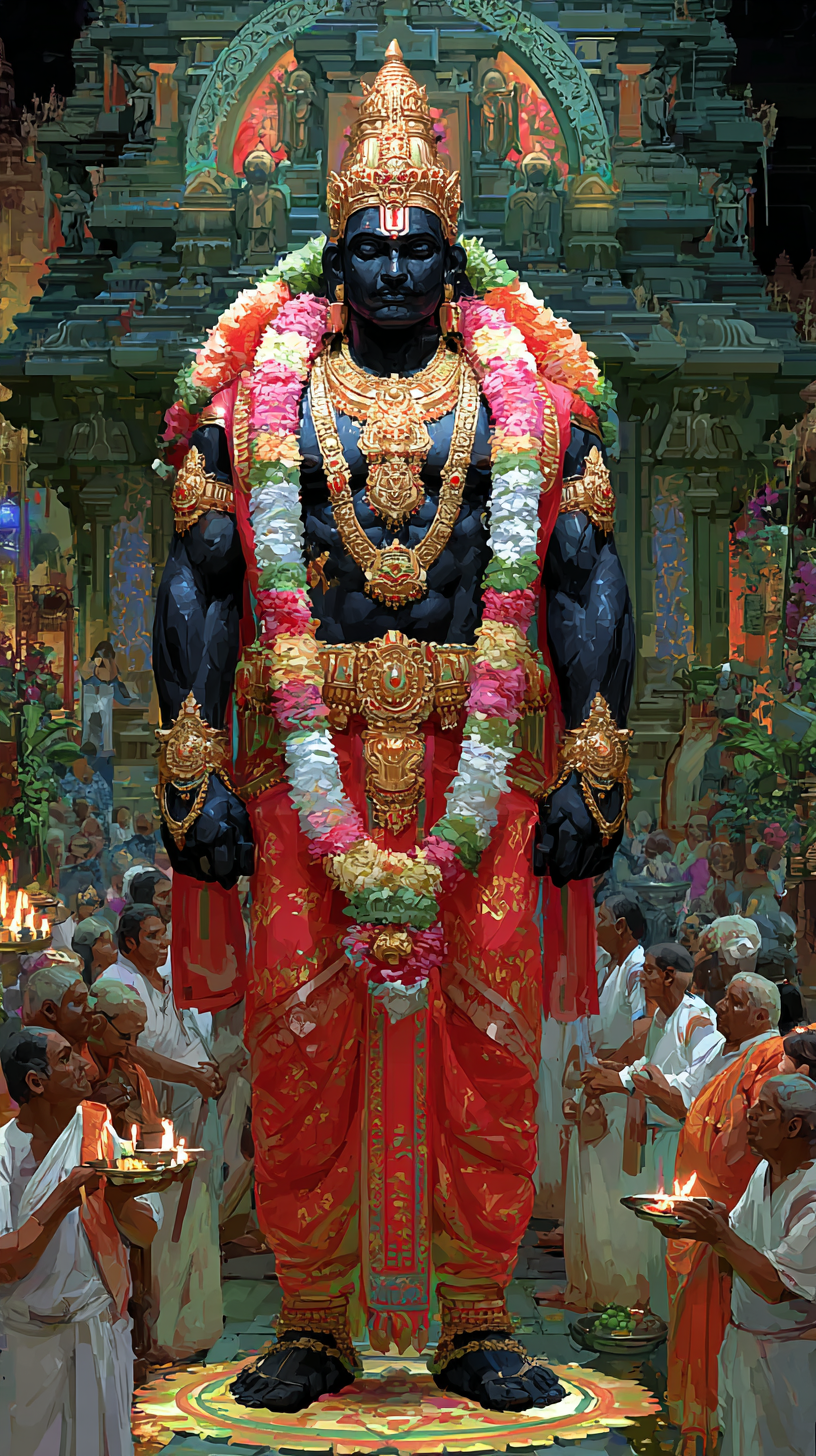The presence of Vishnu, the preserver of the cosmos, is amplified by the temple’s specific legend. The story of the queen bringing the image in dowry connects the earthly realm of royalty with the celestial authority of the deity. This narrative transforms the artwork from a mere sculpture into a sacred heirloom.